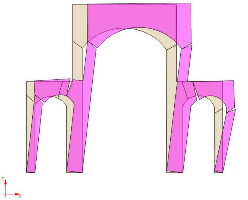 Il modulo esegue l’analisi cinematica lineare basata sull’approccio limite dell’equilibrio e sul Principio dei Lavori Virtuali, calcolando il moltiplicatore dei carichi (λ) che determina l’attivazione del meccanismo di collasso.