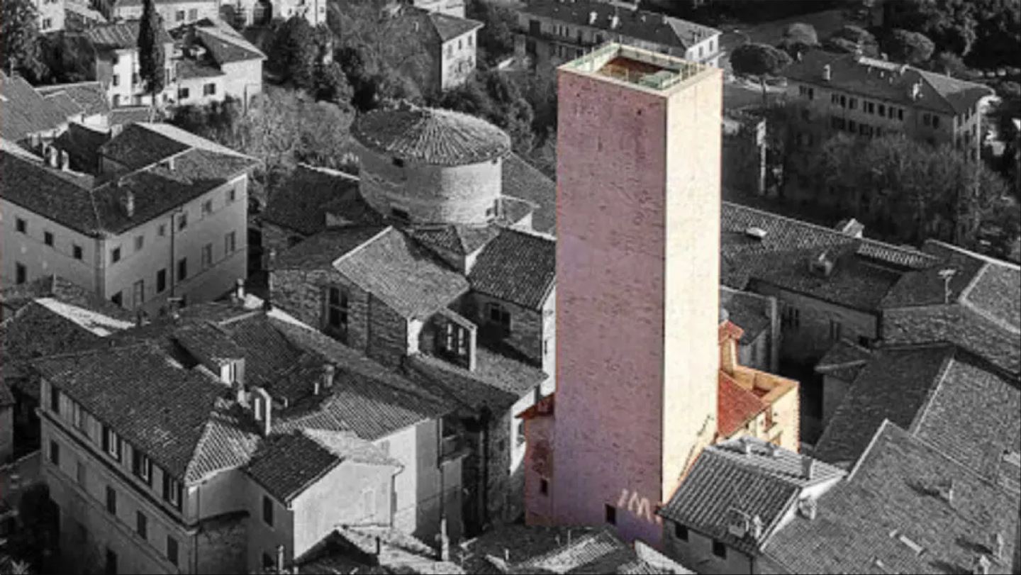 Come si osserva nella planimetria dell’immagine seguente, realizzata a seguito dal rilievo geometrico eseguito sulla struttura, è emersa una differente configurazione planimetrica ai diversi livelli della torre.